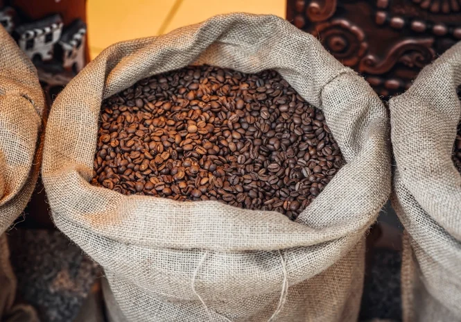 Perdagangan produk hasil pertanian, termasuk kopi dalam bentuk kemasan sachet.